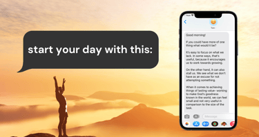 Ever started your day on the wrong foot? You get to the end of the day and wonder what happened! The way we start our day is key and we want to help you start every day well by sending you a positive encouragement each weekday morning- based on timeless scriptures from the Bible. Receive devotional messages with thought-provoking questions. Make the first thing you see each morning an encouragement to reach higher.