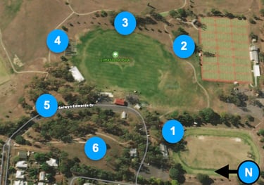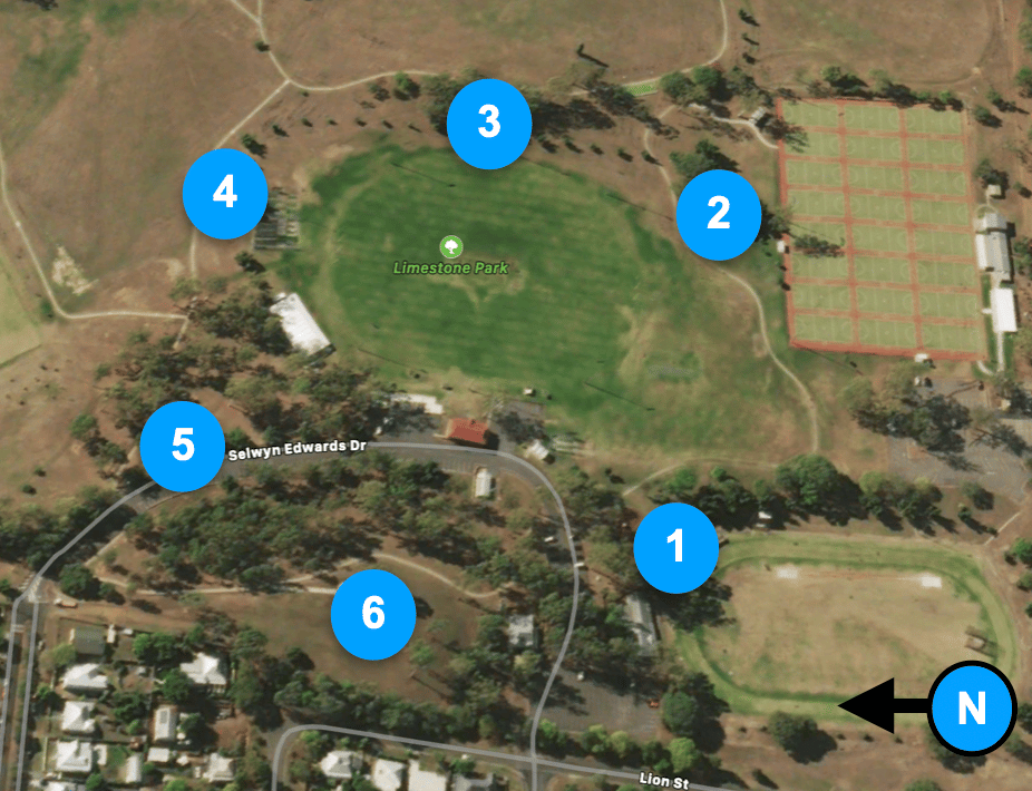 Map: start at the shelter next to the lower clubhouse and follow anti-clockwise, stopping at the six stations. Follow the path. You will start and finish at the central carpark.